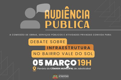Audiência Pública discute infraestrutura, segurança urbana e demandas de moradores do Bairro Vale do Sol 06/03/2026 15h20