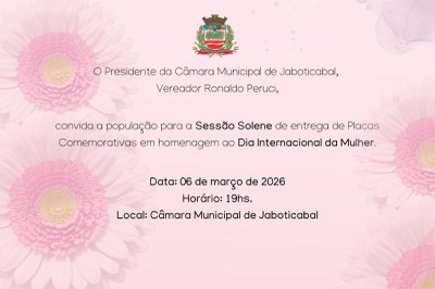 Câmara Municipal de Jaboticabal celebra o protagonismo feminino em sessão solene no dia 6 de março 27/02/2026 15h55