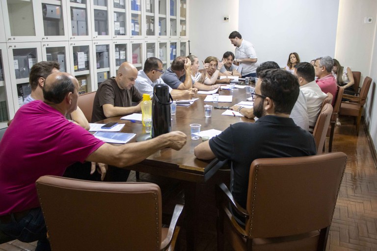 Vereadores e representantes do Executivo e do Sindicato dos Servidores Públicos durante reunião para discutir o PL nº 131/2025, que propõe alterações no Estatuto do Servidor.