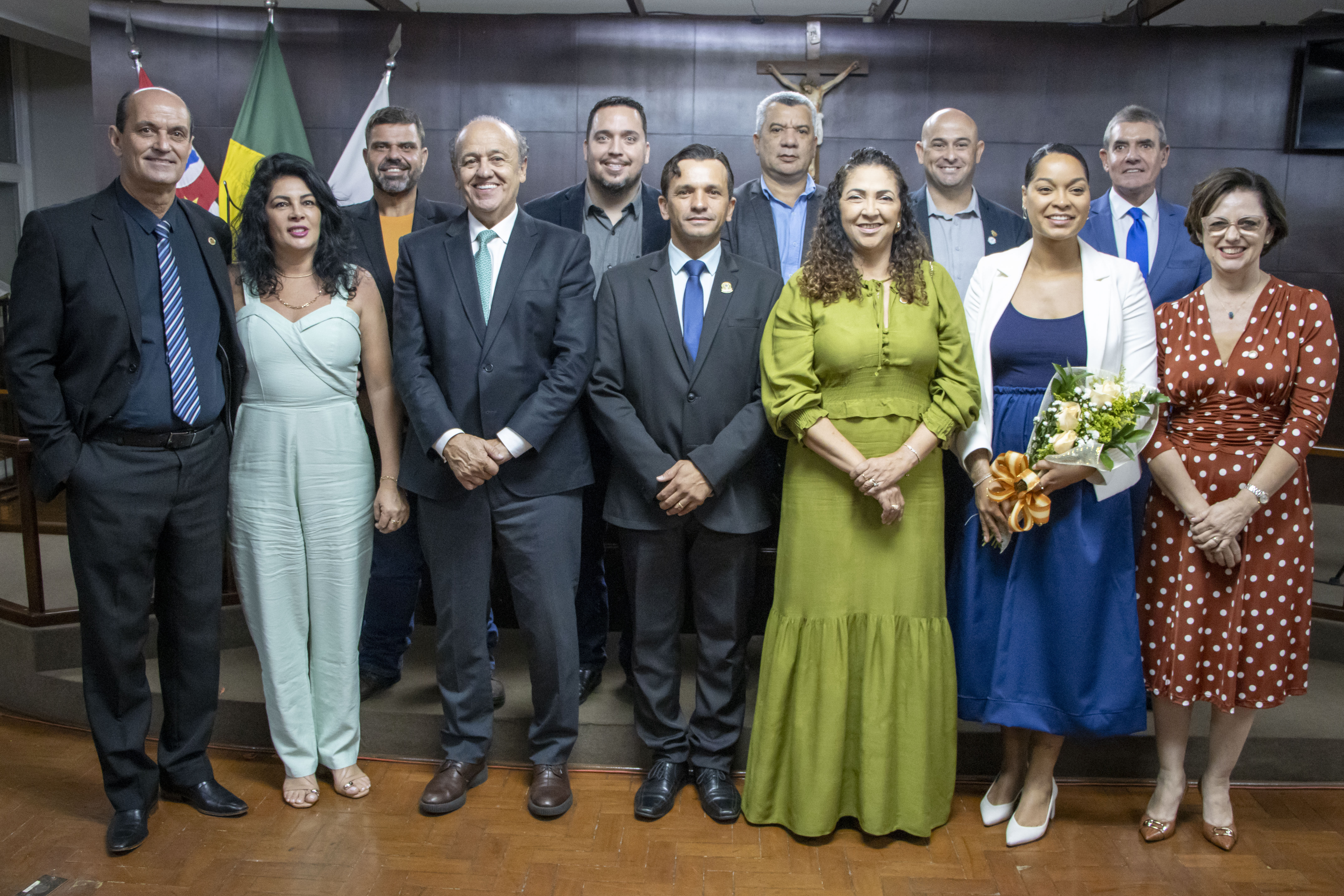 O mais novo Cidadão Jaboticabalense, Dr. Dimas Ramalho, juntamente com autoridades municipais e estaduais.