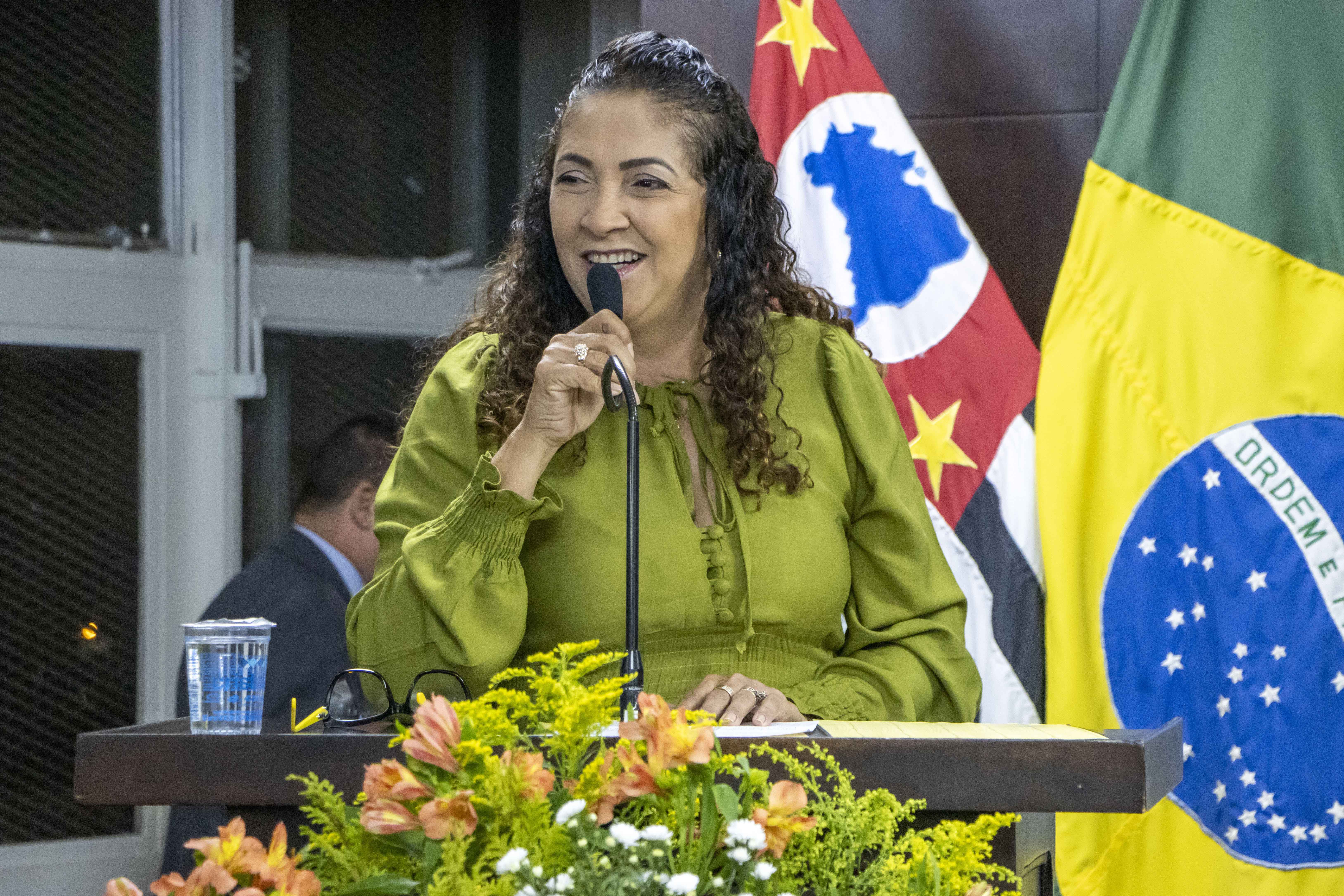 Vice-Prefeita, Dra. Andréa Delegada, na sessão solene para entrega do Título de Cidadão Jaboticabalense ao Dr. Dimas Ramalho .