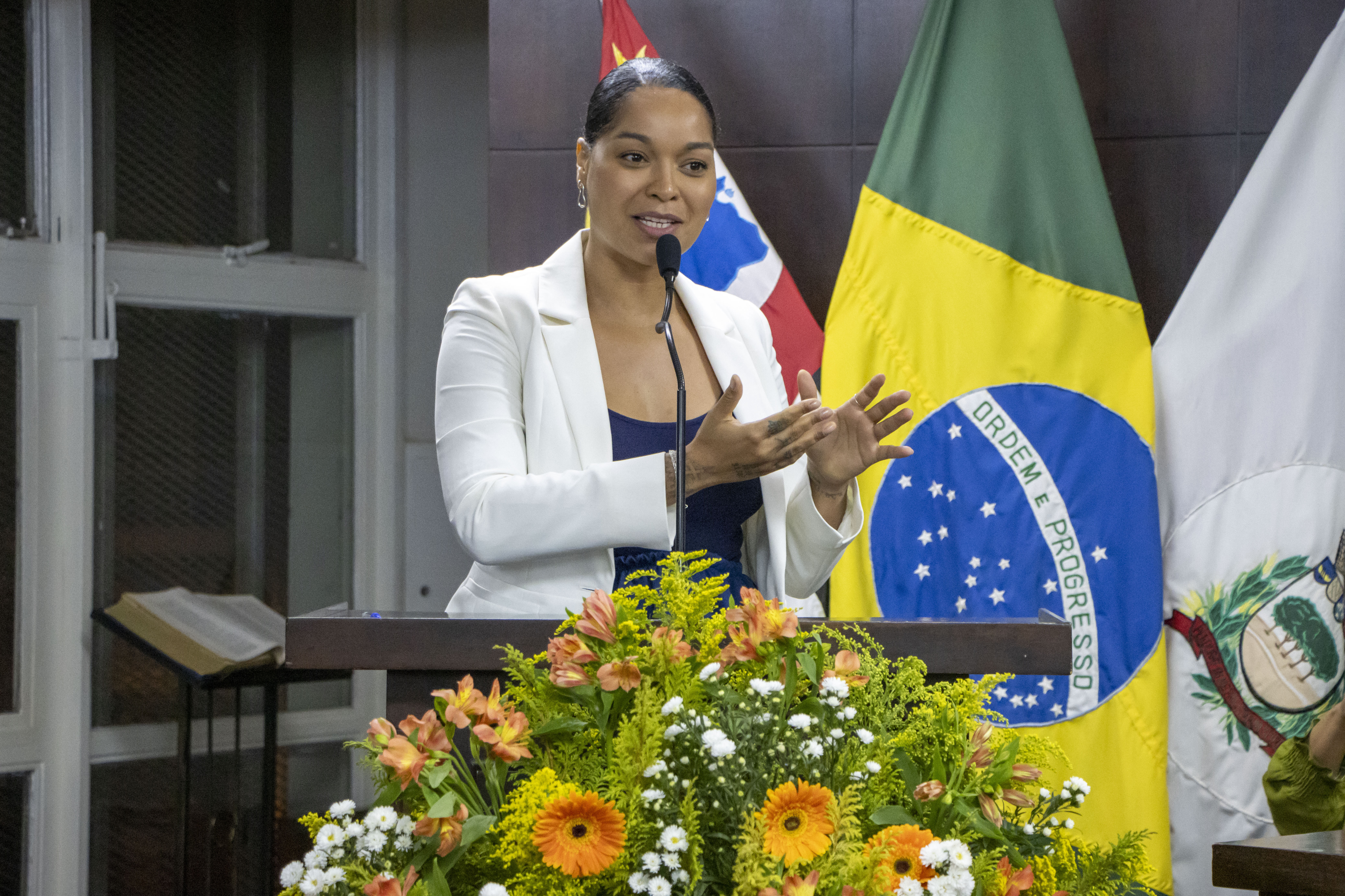 Deputada estadual Thainara Faria (PT) durante sessão solene para entrega do Título de cidadão Jaboticabal ao Dr. Dimas Ramalho.
