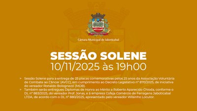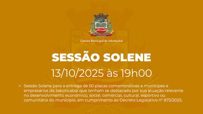 As íntegras de sessões ordinárias, extraordinárias e solenes, e de audiências públicas, você ainda encontra no canal da Câmara no YouTube > https://www.youtube.com/camaramunicipaldejaboticabal.